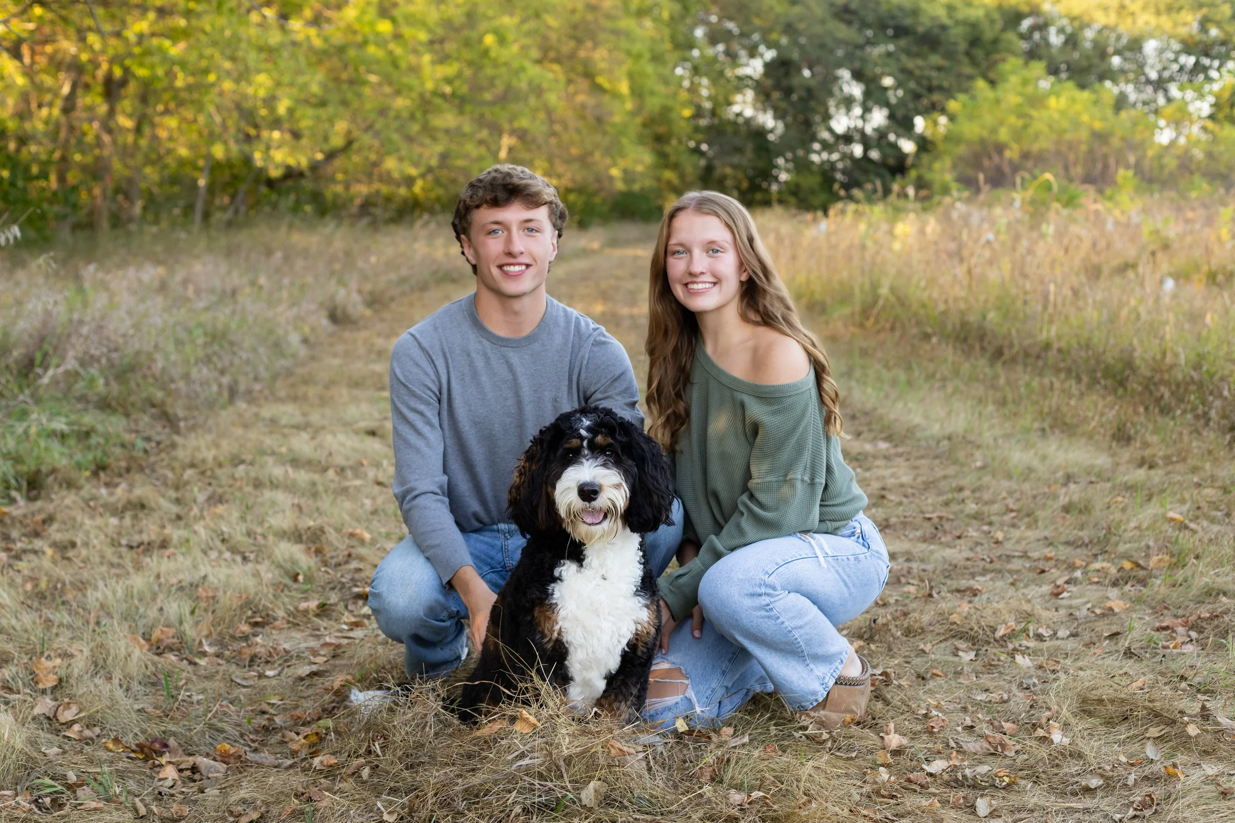 Kaylee, her twin brother, Connor, and their furry pup, Lucy, captured by head photographer Nicole Olinger